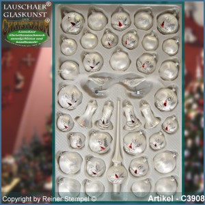 Christbaumschmuck Glasreflexkugeln 8 cm aus dem Sortiment "Old Germany" silber mit Schneezacken und verschieden farbigen Reflexen