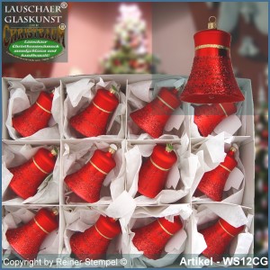 Christbaumschmuck Glasglocken aus dem Sortiment "Frost" unverspiegelt durchscheinend mit weißen Glimmerbändern